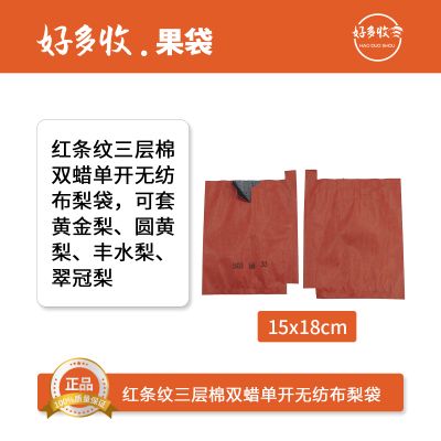 首页 / 果袋 / 梨袋 / 红条纹三层棉双腊单开 无纺布梨袋15*18